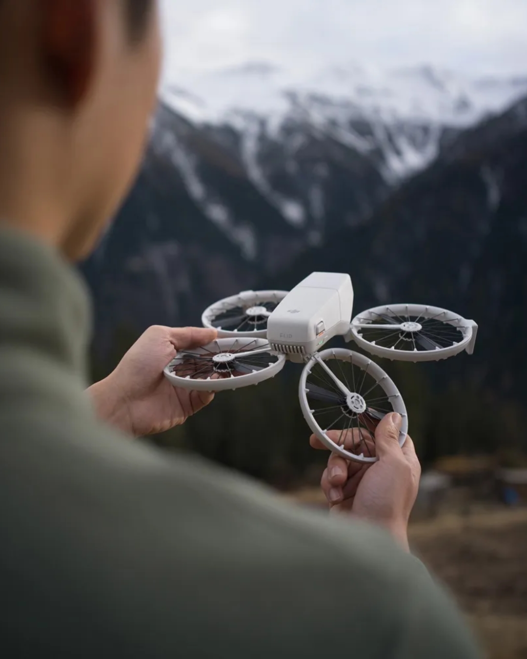 O DJI Flip é um drone compacto, leve e extremamente intuitivo, desenvolvido para quem quer criar imagens aéreas impressionantes sem complicação. Com menos de 249 g, ele cabe na palma da mão e permite decolagem sem controle remoto, tornando a captura de momentos em movimento muito mais simples e acessível.